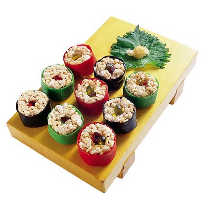 Slice each log in 1-inch-thick "sushi" rolls and wrap them individually with a strip of fruit leather.
