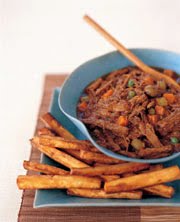 This dish gets its name from the shredded texture of the beef, which resembles clothes so worn they're falling apart. If you're Cuban, please don't come after me for using chuck steak instead of the more traditional flank steak. Both are delicious, but I prefer the texture of the shredded chuck to that of flank. Other than that, this is a traditional version of a Cuban standard, which will taste better the next day.