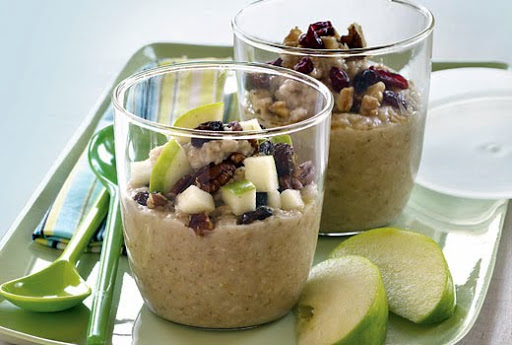 Brown sugar, dried fruit, and walnuts transform ordinary oatmeal into a breakfast worth raving about. Also try the crunchy variation with Granny Smith apples, real maple syrup, raisins, and pecans!