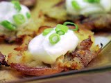 Place the potatoes on a sheet pan, pour 3/4 cup water over the potatoes and cover tightly with foil. Bake on the bottom rack until tender, about 30 minutes. Remove from the oven, drain any remaining water and let rest 8 minutes.