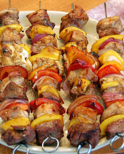 Remove the skewers from the rack and transfer to a warmed platter or individual plates. Pass the remaining sauce alongside.