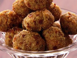 Coat the olives lightly in flour, eggs and breadcrumbs. To avoid the stuffing from seeping out, repeat the process twice to get a thick breading. Set aside.