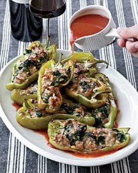 Make Ahead The stuffed peppers in sauce can be refrigerated overnight.