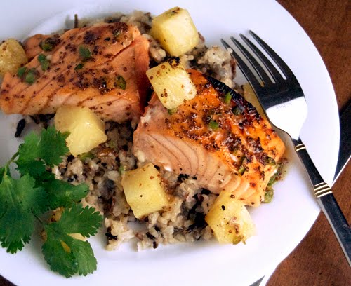 Serve the salmon and pineapple chunks over 1/2 cup rice each and drizzle with the leftover glaze.