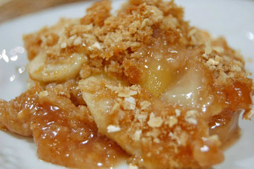 In a bowl, combine first four ingredients. Cut in butter until crumbly. Press half into a greased 2-1/2-qt. baking dish or a 9-in. square baking pan. Cover with apples. In a saucepan, combine sugar, cornstarch, water and vanilla; cook and stir until thick and clear. Pour over apples. Sprinkle with remaining crumb mixture. Bake at 350° for about 1 hour or until the apples are tender. Serve warm, with ice cream if desired. Yield: 8 servings.