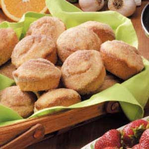 Add butter to a shallow bowl. In another shallow bowl, combine sugar and cinnamon. Dip muffin tops in butter, then in cinnamon-sugar. Serve warm. Yield: 1 dozen.