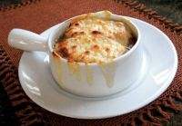 Discard bay leaf. Ladle into ovenproof soup bowls; top with bread and cheese. Bake at 400° for 10 minutes or until cheese is golden brown. Yield: 8 servings (2 quarts).
