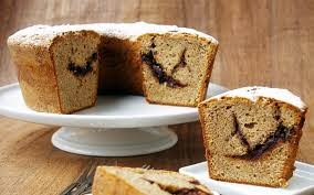 5. Spoon a little more than half the batter into the pan and smooth the top. Sprinkle with the swirl mixture. Spoon the remaining batter over it and smooth the top. Using a round-bladed knife, make wide curling strokes through the batter.