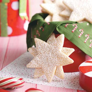 • On a lightly floured surface, roll out dough to 1/8-in. thickness. Cut with a floured 2-1/4-in. star-shaped cookie cutter. Place 1 in. apart on ungreased baking sheets. Bake at 375° for 8-10 minutes or until edges begin to brown. Remove to wire racks to cool.