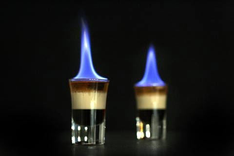 The Flaming B52 with Kahlúa, Irish Cream, and Grand Mariner … a flaming liquid dessert.
