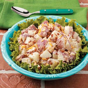 Jazz up creamy potato salad with cheese, bacon and ranch salad dressing.