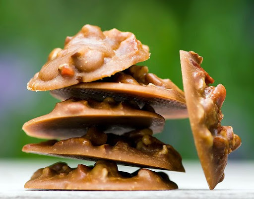 2. Remove from heat and add butter, vanilla, pecans, orange zest and bacon and beat with a wooden spoon until creamy. Be very careful - this stuff is HOT.