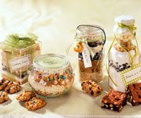 1. Layer in a 1-quart glass jar or canister the following ingredients: oats, nuts, brown sugar, cinnamon, chocolate pieces, biscuit mix, cherries or raisins, and sunflower seeds. Tap jar gently on the counter to settle each layer before adding the next one. Cover jar store at room temperature up to 1 month. Or, attach baking directions and give as a gift.