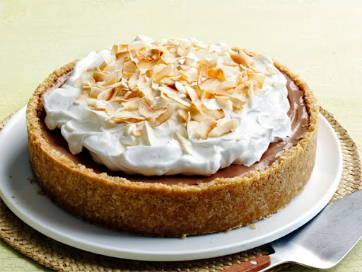 Remove the pie from the freezer 20 minutes before serving. Beat the cream and confectioners' sugar with a mixer until soft peaks form, then spread over the pie. Top with toasted coconut, if desired.