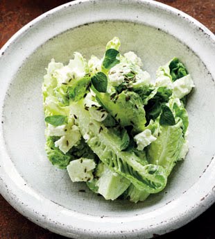 - 1 1/2 pounds Little Gem lettuce or hearts of romaine, stemmed and torn by hand