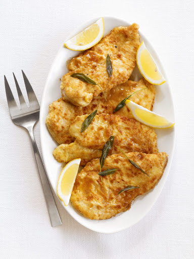 Transfer the chicken to a platter. Top with the fried sage and drizzle with the pan sauce. Serve with lemon wedges and grains on the side.