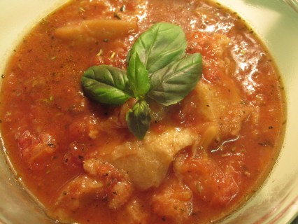 Heat 4 tablespoons of oil in a large pot over high heat. Saute eggplant with salt until soft and golden. Drain on paper towels.