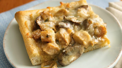 4) Sprinkle pizza crust with 3/4 cup of the mozzarella cheese and 1/4 cup of the Parmesan cheese. Spoon chicken mixture evenly over cheeses. Top with remaining cheeses. Bake 10 to 12 minutes longer or until cheeses are melted and crust is golden brown