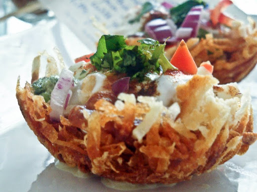 This version of Tokri chaat is typical to Punjab- a state in the northern part of India. Before my grandparents shifted to Chandigarh, they were staying in this town called Jalandhar (famous for its sporting goods industry). The main market in Jalandhar- Model Town- used to be walking distance from our house. In the evening, the market would be chock-a-block full. We would regularly visit this bakery on the corner of the market and buy all kinds of junk food from there. Now, on the same side where this bakery, was this guy who would sell different kind of roadside food- aloo tikki chaat, indian chowmein and of course, the reason why this post is up today- tokri chaat.