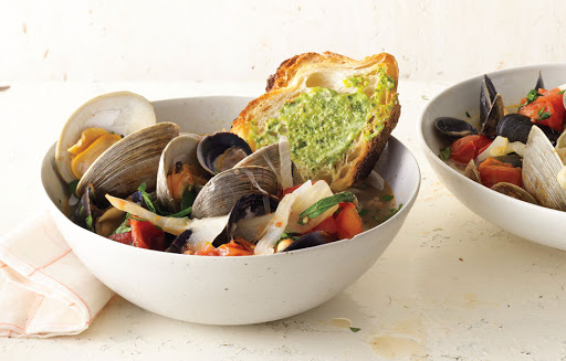 • 3 pounds mixed shellfish (such as littleneck clams, cockles, mussels), scrubbed