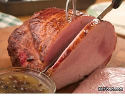 In a small bowl, combine cornstarch with 3 tablespoons sauce from saucepan; stir until smooth then add to saucepan and stir until sauce is thickened. Remove ham to a cutting board and slice. Serve with sauce.