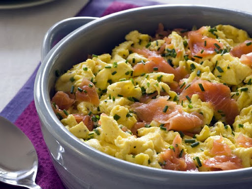 Make scrambled eggs special with smoked salmon. Rich with heavy cream, simple seasonings let the smoked salmon flavor shine.
