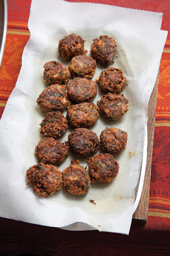 2. Pour oil into a 4-qt. pot to a depth of 2"; heat over medium-high heat until a deep-fry thermometer reads 315°. Working in 2 batches, fry patties until browned and crisp, 5–6 minutes. Using a slotted spoon, transfer fritters to paper towels.
