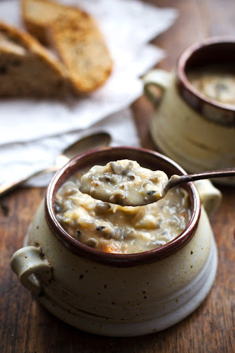 Add this to the rice and chicken in the crockpot and stir to combine. Add extra water or milk to adjust the consistency as you like it. Season with additional salt and pepper.