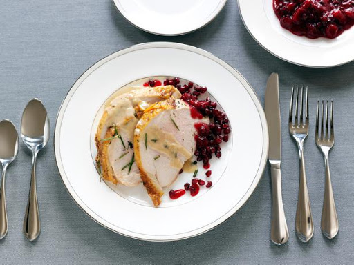 Roasted Turkey Breast with Creamy Gravy and Cranberry Pomegranate Sauce