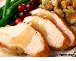 Skim off and discard any additional fat from the drippings in the measuring cup and add enough chicken broth to make 4 cups of liquid total.
