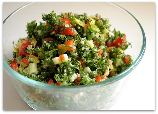 * Put lemon juice, olive oil, cumin and salt and pepper in a bowl and whisk to blend. Add remaining ingredients, toss to mix and refrigerate until serving time.