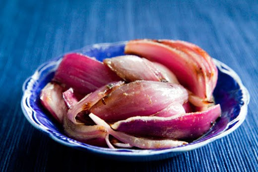 5 Once the onions are cooked, remove the onions from the grill and slice off and discard any tough little root ends, and any outer skins that have become too dried out by the grill.