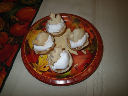 Roll each pie crust on a floured surface to a 11 inch square. Cut each crust into 12-3 inch rounds. Fit the little circles into 24 mini cupcake cups.