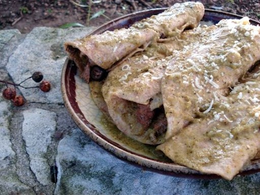 Bathe the tortillas in the sauce, then fill them with shredded beef or your favorite meat/cheese.