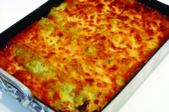 Using oven mitts or pot holders, return the pan to the oven and bake the lasagna until golden brown and bubbly, about 15 minutes.