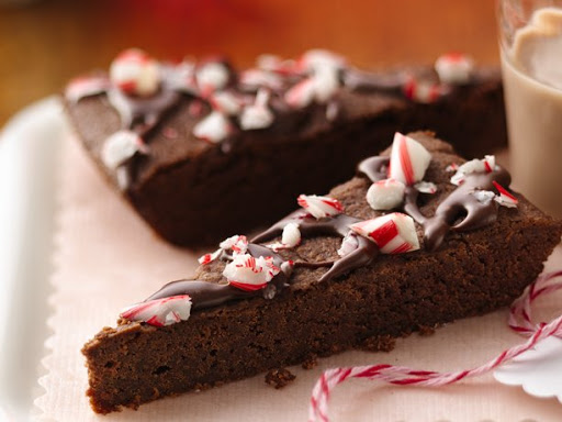 4 In small bowl, mix powdered sugar, 2 tablespoons cocoa and enough of the milk until glaze is smooth and thin enough to drizzle. Drizzle glaze over wedges; sprinkle with candies.