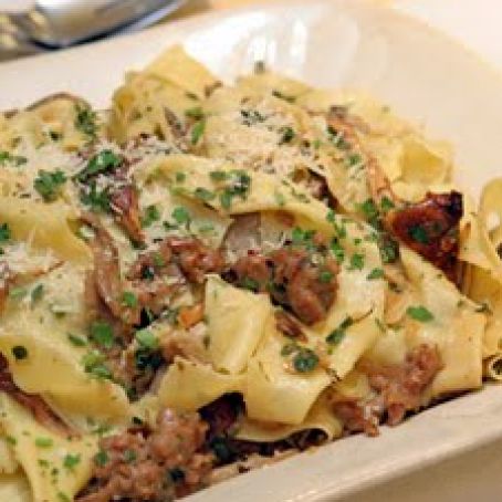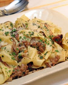 4.Cut pasta sheets to 12 inches long. Fold over twice, dusting both sides generously with semolina. Cut crosswise into 1-inch-wide slices. Gently shake pappardelle to separate lengths of pasta and remove excess flour. Pasta will keep fresh refrigerated for up to 12 hours.
