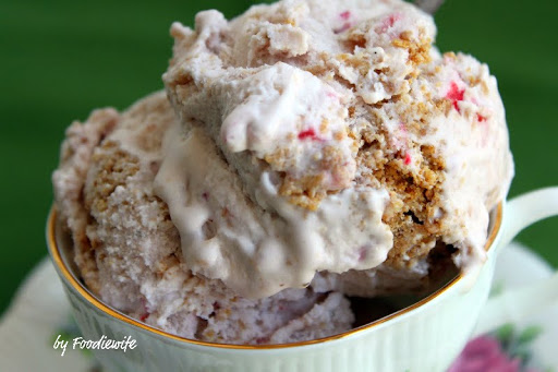 Ice cream, made from a custard with eggs, is my favorite ice cream recipe. I love the richness and creaminess of the end product. Adding cream cheese to the custard is pure genius! A puree of fresh strawberries was used to flavor this cream cheese custard, as a perfect summer flavor. I also baked a cheesecake crust, on a 1/4 sheet pan, and added the bits of crust to the churned ice cream. This captures the perfect sweetness of cheesecake, with a little added crunch from the graham crackers. This flavor is a sure winner, if I do say so myself. (This recipe is adapted from Joy The Baker.)