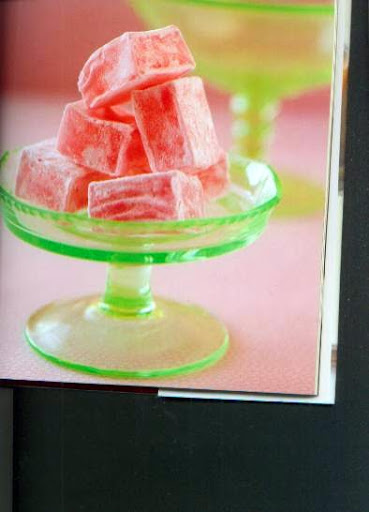 Cut into 1" squares and remove them from the pan. Dust thoroughly with conf sugar and place them on wire racks to dry for at least 12 hours or up to 18 hours. To store, dust again with conf sugar on all sides and pack in layers, separted by waxed paper in airtight tin. Will keep up to 3 weeks.