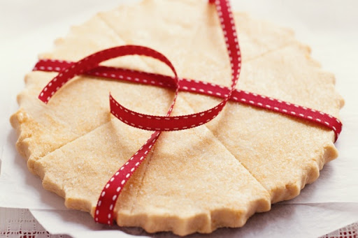 Cream butter and sugar together. Add cornstarch and baking powder, mix well. Add flour one cup at a time, mixing well each time. Knead for 15 minutes. Roll out onto wax paper into 8 inch rounds approximately 1/2" thick. Make two rounds. Pinch outer edge and prick with a fork.
