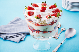 LAYER half each of the cake, pudding mixture, strawberries and chocolate in deep glass bowl; repeat layers. Refrigerate 1 hour.