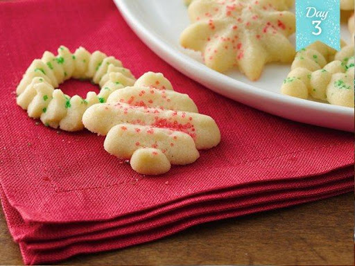 2 Place dough in cookie press. Form desired shapes on ungreased cookie sheet. Decorate with currants.