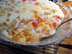 Stir vanilla pudding mix and instant breakfast orange drink mix together with almost all of the pineapple juice.
