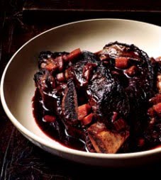 Después de cocer a fuego lento durante unos minutos, añadir los champiñones. Tapar y cocer a fuego muy lento hasta que la carne esté tierna tenedor y casi caerse del hueso, alrededor de 1 1 / 2 a 2 horas.