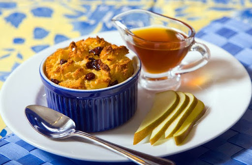 A sweet bread pudding consists of cubes of bread combined with a mixture of eggs and cream and/or milk. Assorted fresh and dried fruits can also be incorporated, as can spices such as vanilla, cinnamon or allspice.