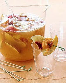 1.In a pitcher, combine peach, nectarine, and apricots, all pitted and cut into wedges. Stir in peach brandy; let sit at least 1 hour. Stir in Prosecco and peach nectar. Add superfine sugar, if desired. Serve chilled