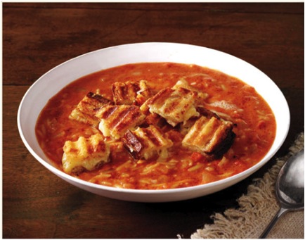 Serve hot with Grilled Cheese Croutons scattered on top.