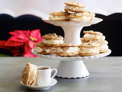 Arrange 12 cookies, flat side up, on a baking sheet. Top each with a scoop of ice cream, then another cookie, flat side down, pressing slightly to adhere. Cover and freeze the sandwiches until they are firm, at least 3 hours. Sandwiches can be made up to 4 days ahead. Wrap each sandwich with plastic wrap and keep frozen.