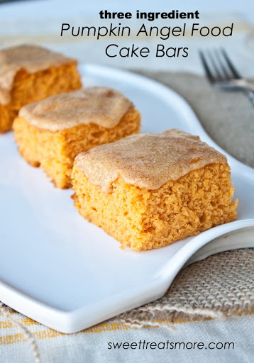Mix angel food cake mix, pumpkin, and 1 tsp pumpkin pie spice in a bowl. Pour into a greased 9 X 13 in cake pan. Bake for 25-30 minutes or until a toothpick inserted comes out clean. Let cool.
