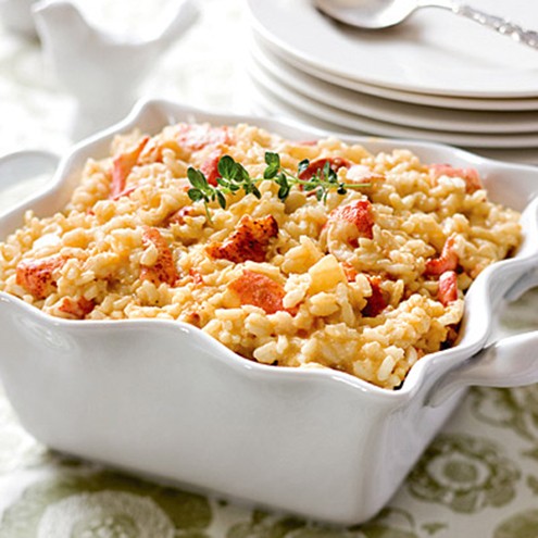Creamy risotto made with truffle oil and homemade lobster broth with big pieces of lobster - a special meal that can be easily made any night of the week!